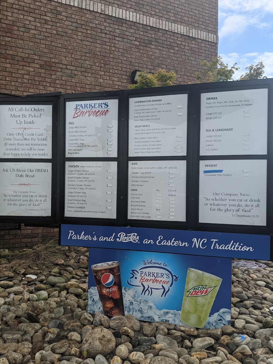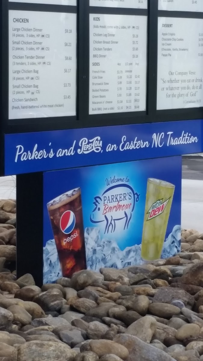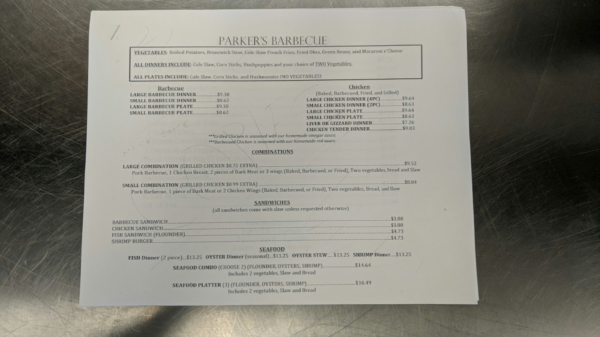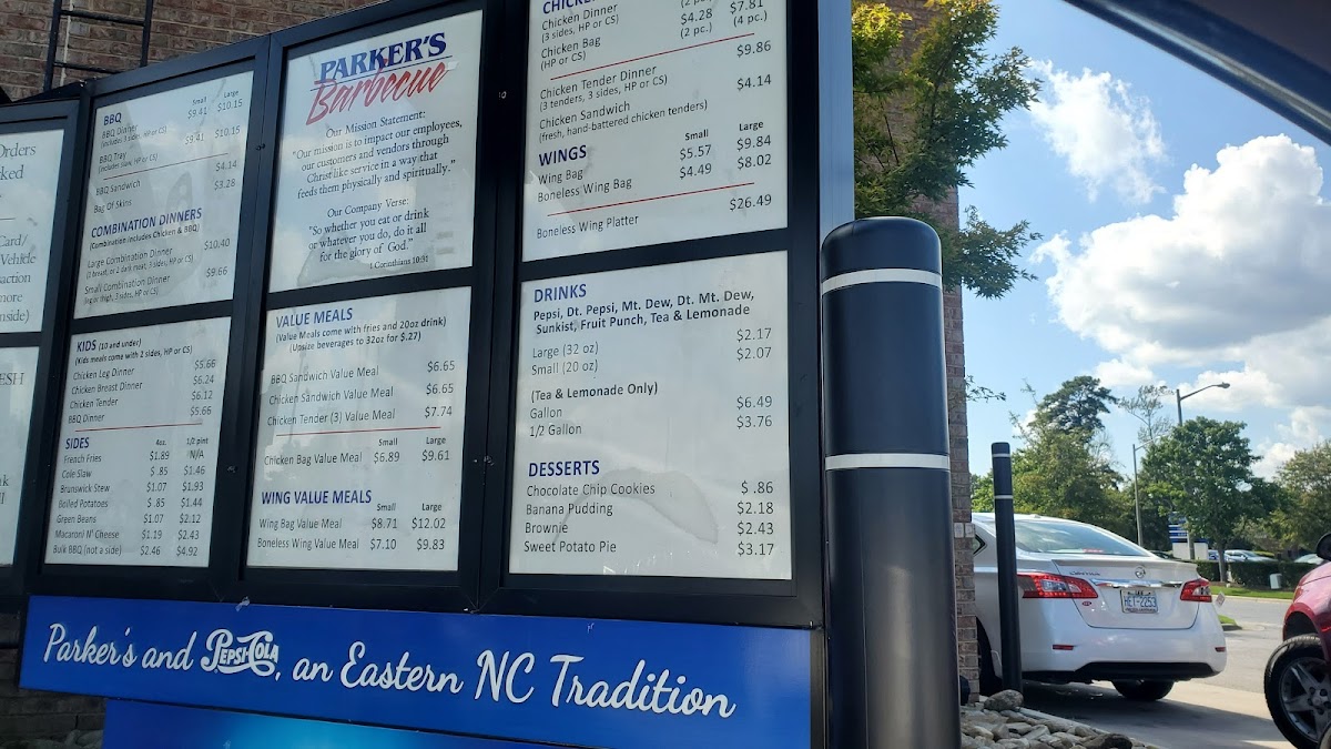 “ There are a couple of Parker in town but this location is the newest and cleanest, for dine in I prefer this location for those reasons. I would never order fried chicken from a Bbq place so I always stick with their chop bbq sandwich or dinner plate. Their bbq is seasoned and well flavor without any sauce, always consistent anytime of day. One mouth full of bbq and then follow by some potatoes or stew would be a great. Another good thing about Parker's is that they are against tips. Tipping is getting ridiculous and it is nice to come to a place that is against tipping. ”